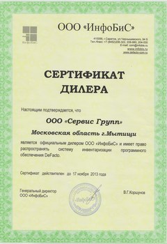 ООО"Сервис Групп" стала официальным дилером ООО «ИнфоБиС» и имеет право распространять систему инвентаризации программного обеспечения DeFacto.