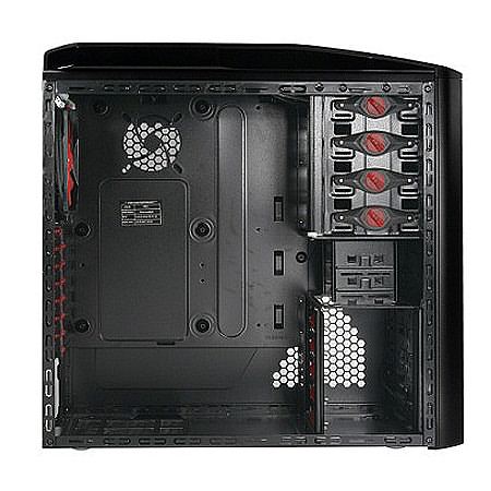 Очередной такой новинкой стал корпус V9 Black Edition, который оборудован парой посадочных мест под помощь огромные 23-см вентиляторы, обеспечивающие мощный и при этом тихий обдув комплектующих внутри системного блока ПК. Один из кулеров устанавливается в боковой панели «черной редакции», чтобы засасывать прохладный воздух внутрь, а второй установлен в верхней части и работает, соответственно, на выдув горячего воздуха из системы.
